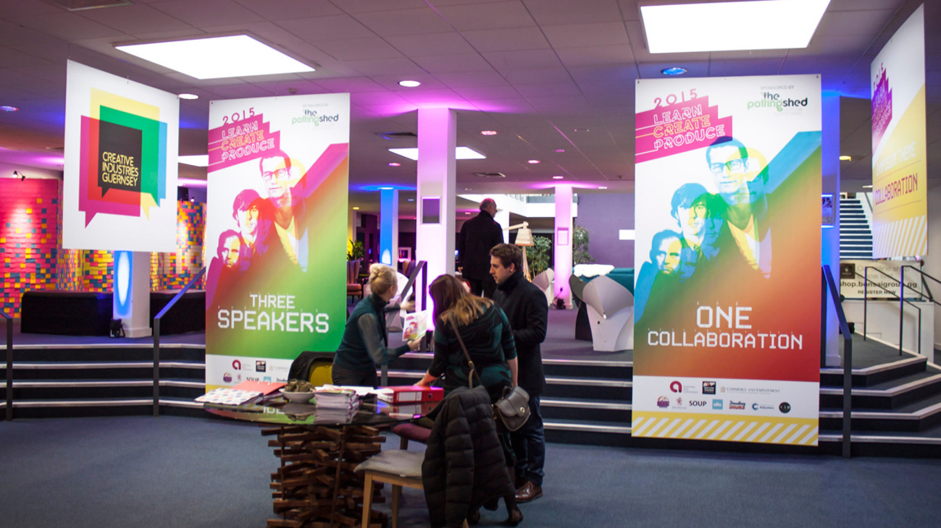 Moving the Guernsey event to Beau Sejour was a crucial decision, as it was always going to be a bigger turnout than the first event. We had a beautifully put together entrance / breakout room kitted out by wonderful interior products from Bonsai as well as an incredible installation piece produced by the students at the College of Further of Education made from hundreds of sticky notes. We also had a highly entertaining Oculus Rift demonstration from K3D which made more than a few people a bit giddy and terrified.