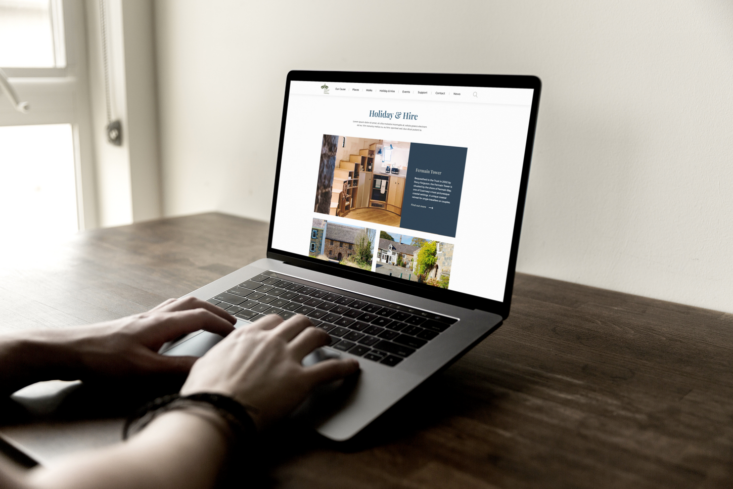 A modern hygge style colour scheme uses a cosy colour palette that extends into the colour grading of the images, creating harmony throughout the supplied imagery and overall design.