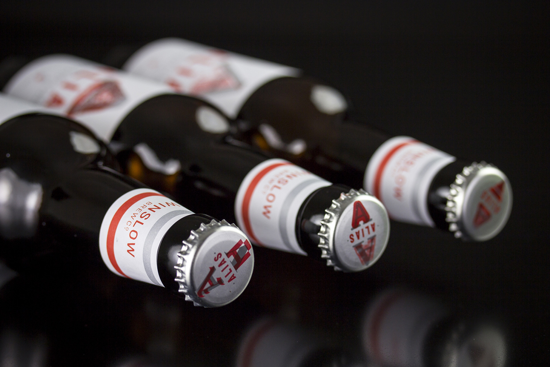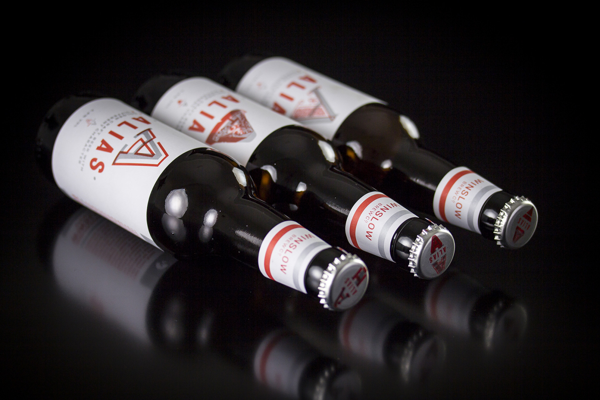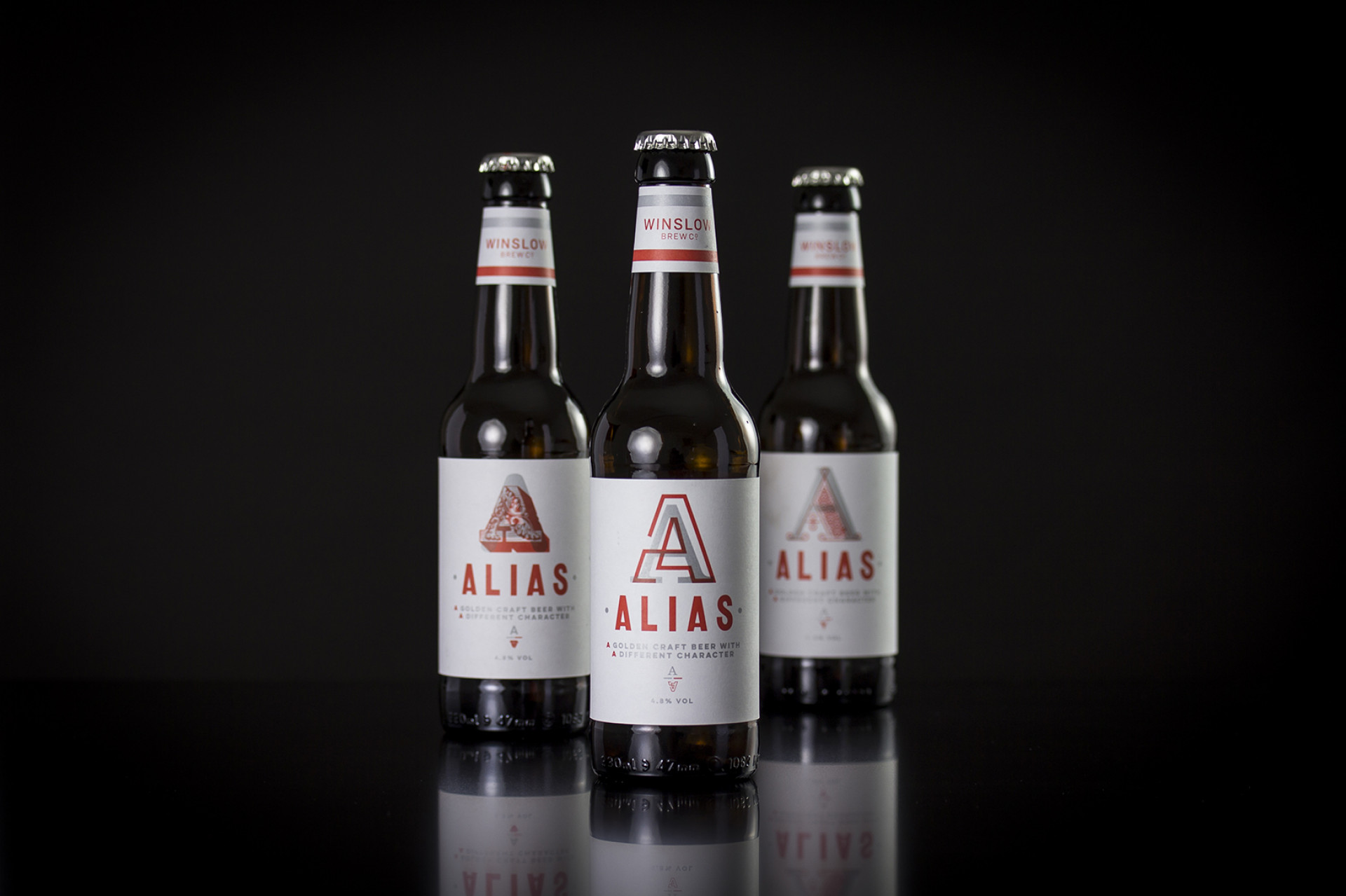 G provided us with the names (Winslow Brew Co for the brewery and Alias for his first beer). Winslow Brew Co. comes from a family heritage name and Alias from a psychology that, when you have an Alias beer, you are away from the world’s stresses, problems and you are in a positive social environment… your Alias as such. This provided us with a rich story to tell and convey, whilst not overlooking the hand-made craft tangibility. The beer itself is a golden ale, with a taste that bridges a pale craft ale to a session lager… basically it tastes like angel’s tears.
