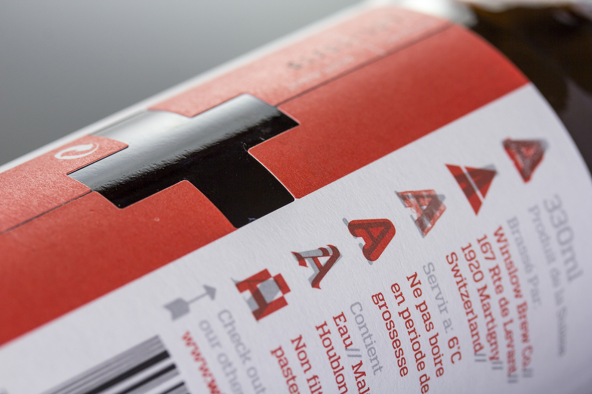 G mentioned that, whilst it was a Swiss product, he didn’t want to over ‘Swiss’ the design. Our subtle homage to Switzerland comes in the form of the die-cut Swiss cross that is made whole where the label edges meet on the reverse – which provides a visual and tactile nod to its home.