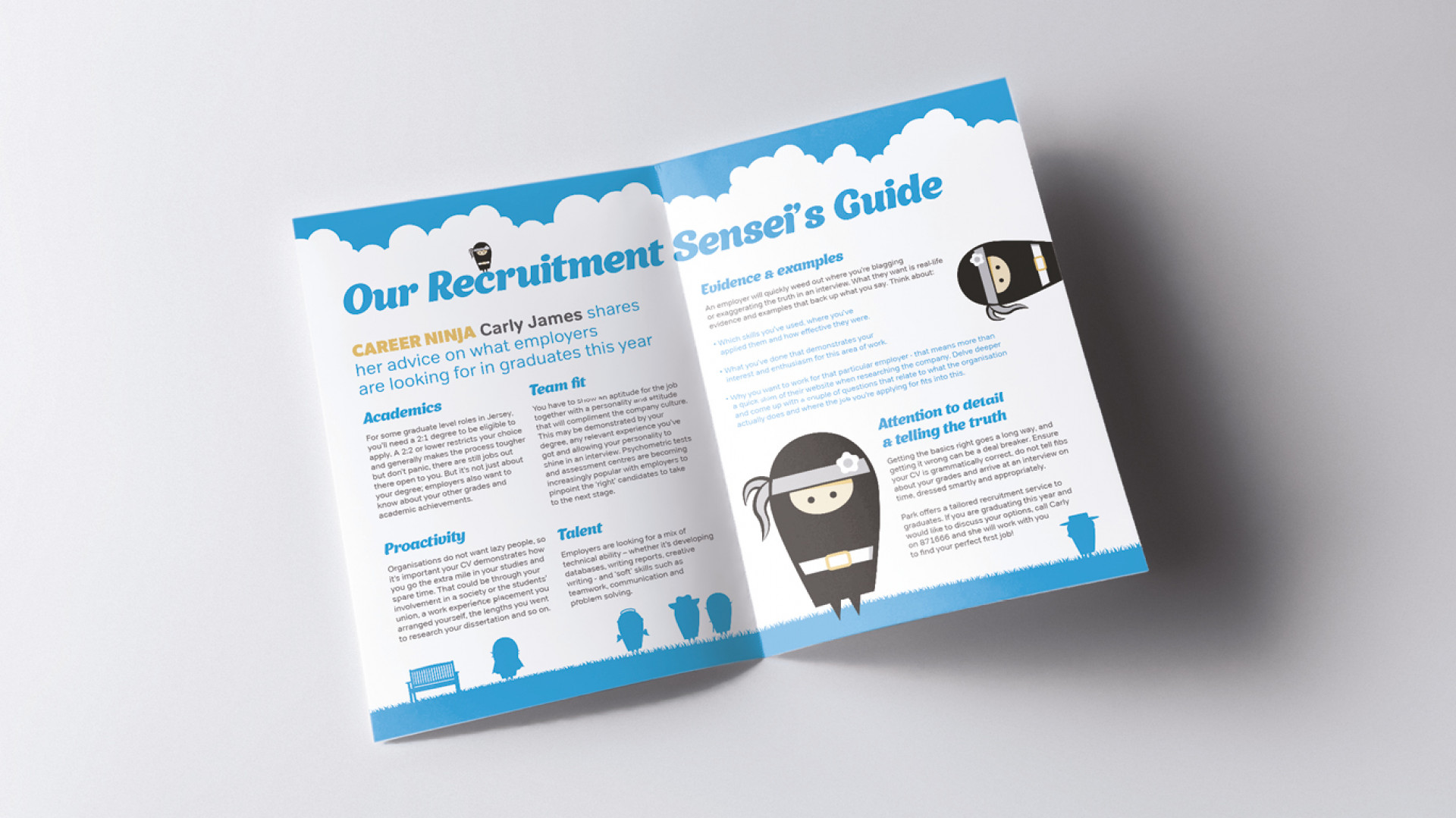 We illustrated each member of staff and gave them all a pseudo super power to get people jobs. Each character provides a direct skill set for every candidate that contacts them and shows that they're always working as a team.