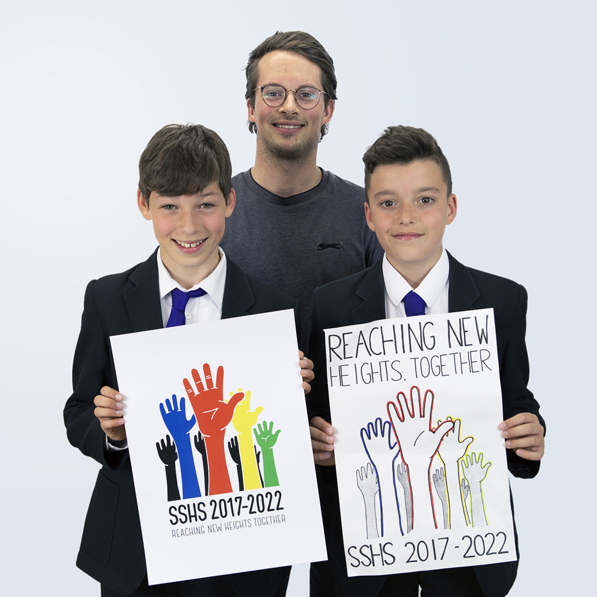 Thrust with the opportunity to produce a logo for their year group, Joe Salmon & Ethan Levins trumped the bunch with a keen eye for iconic imagery. Hands jumping in the air; evoking powerful memories of classroom life for some whilst simultaneously symbolising unity for others. Tied nicely in with their school colours and underlined with a catchy strapline. Our digital adaptation was a breeze – the hard work was already done. We couldn’t have done better if we tried - kudos to the kids.
