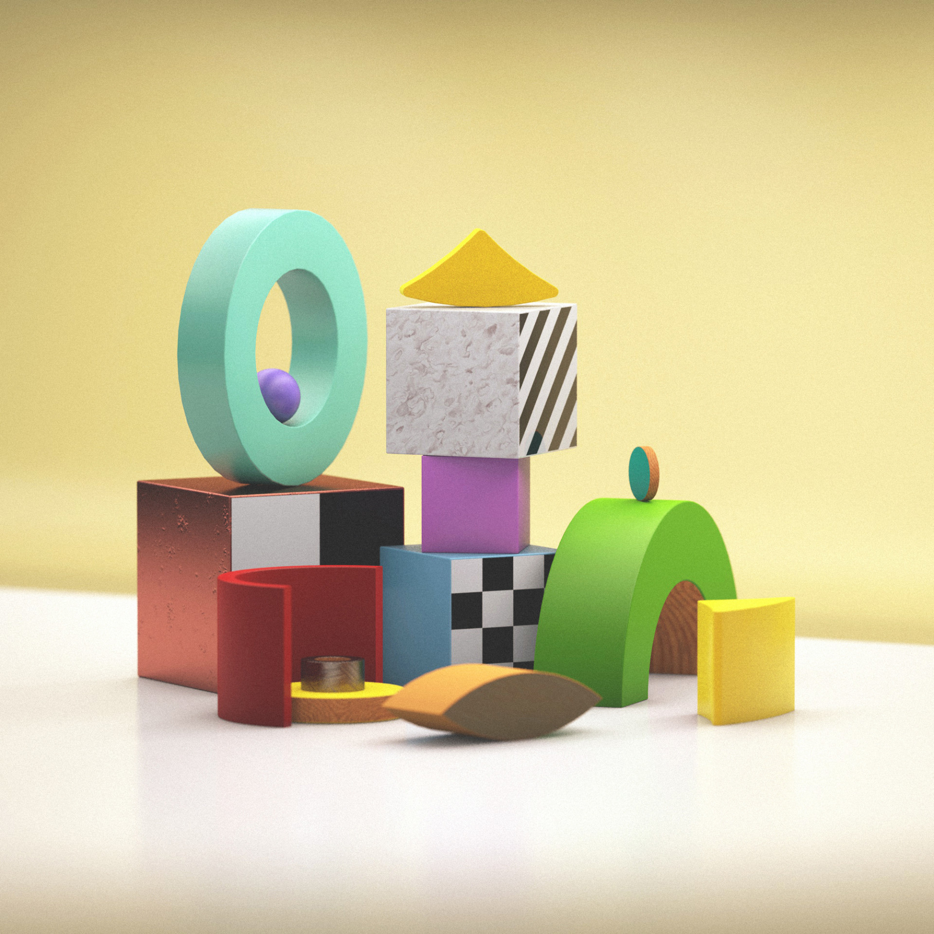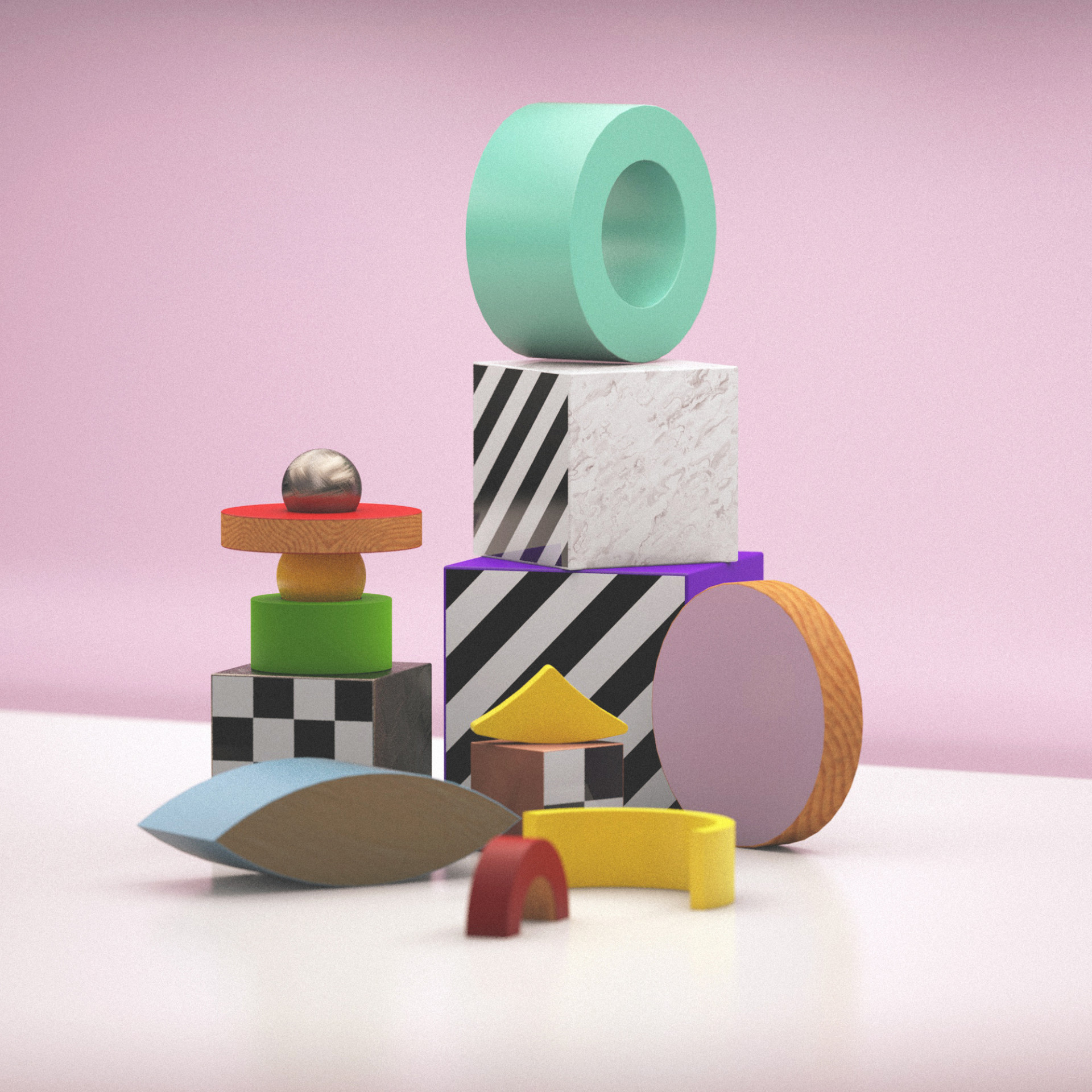 Sometimes the simplest looking things require the closest attention to detail in order to deliver a really believable render. These C4D experiments that we worked on recently using only primitive shapes are all about the lighting and texturing and show how with very little you can achieve a lot.
